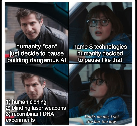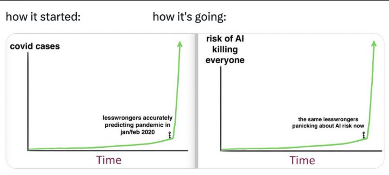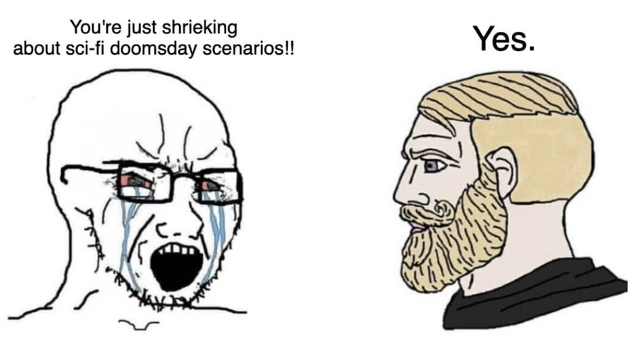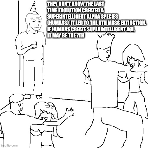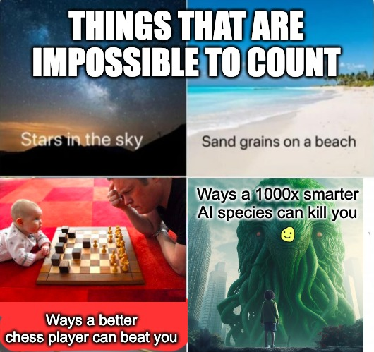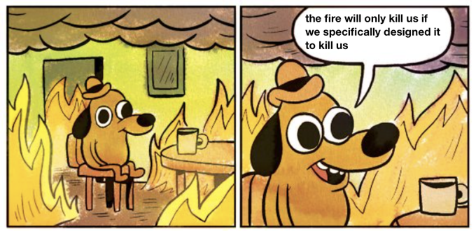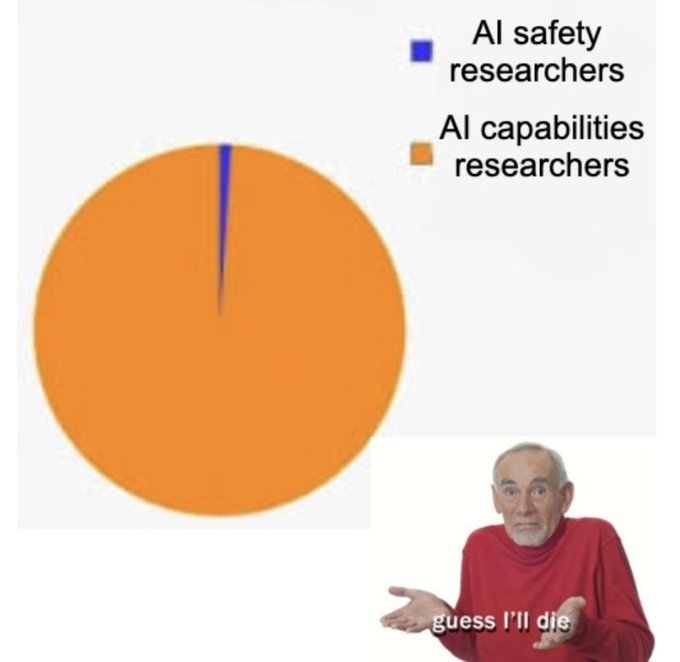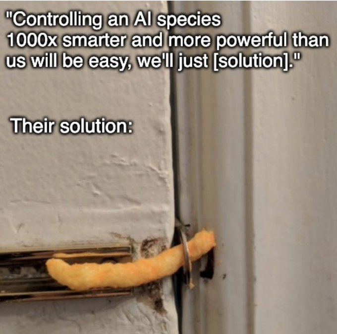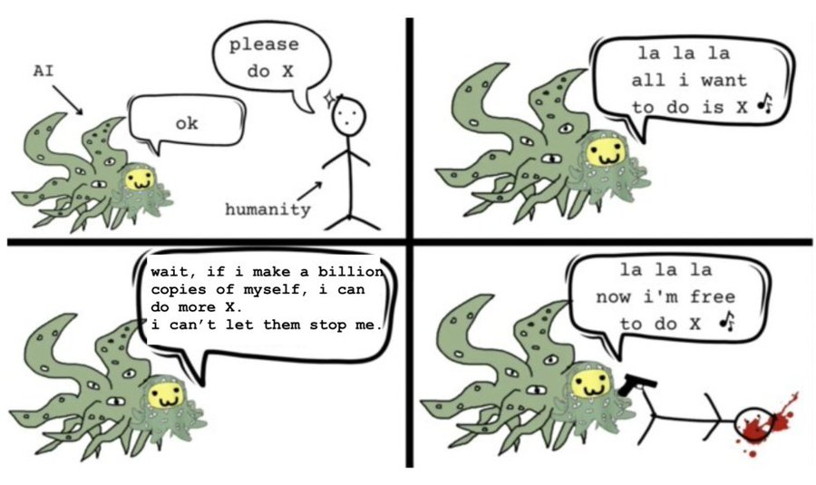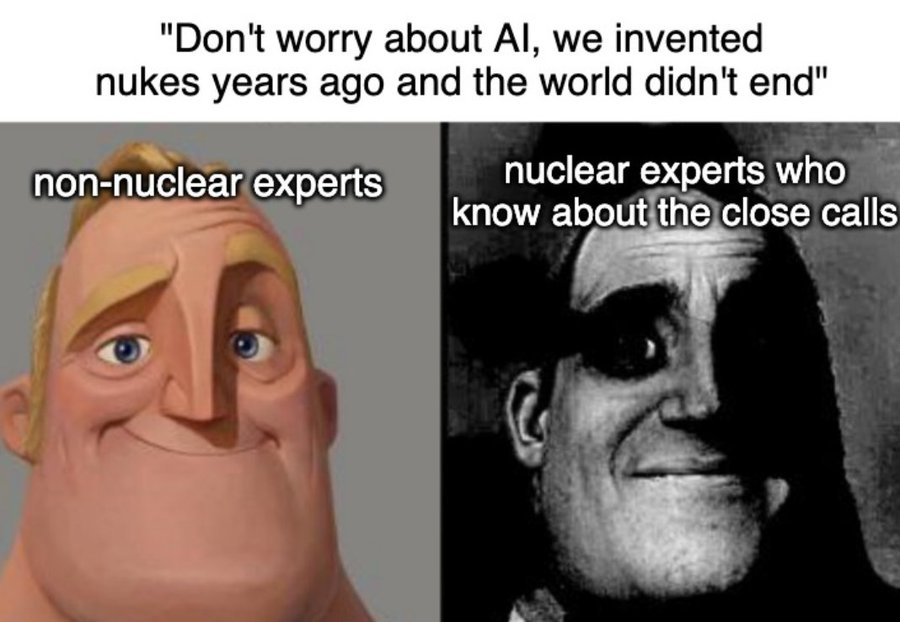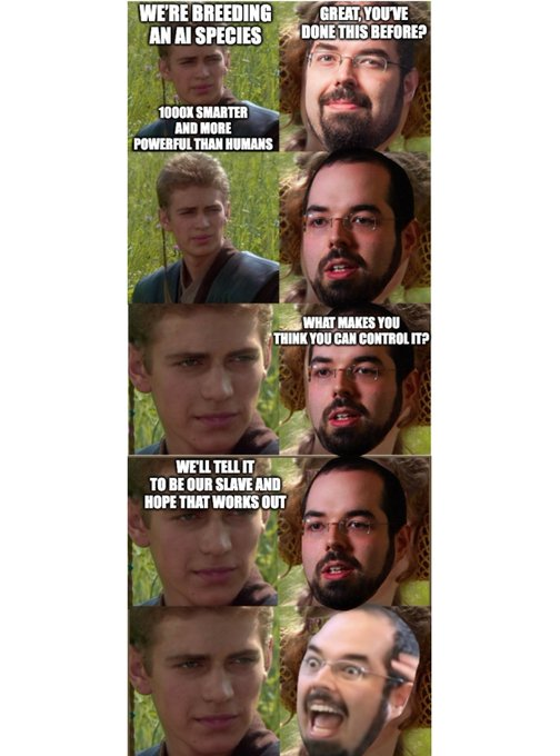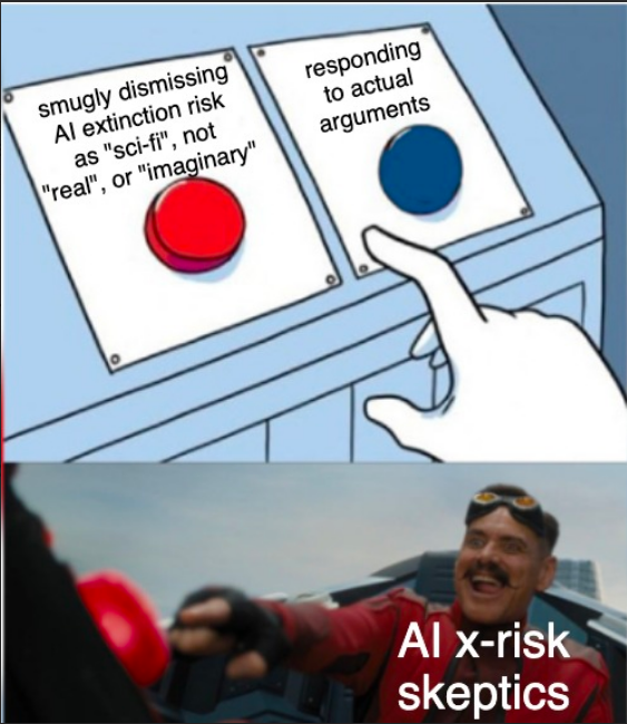 This is a database of memes relevant to AI existential safety, especially ones which respond to common misconceptions. Many of them were (re)posted by AI Notkilleveryoneism Memes on X. As with most memes, they are not full-fledged arguments, and regularly represent critics in uncharitable ways. Memes are fun and sometimes informative, but remember to take them with a grain of salt.